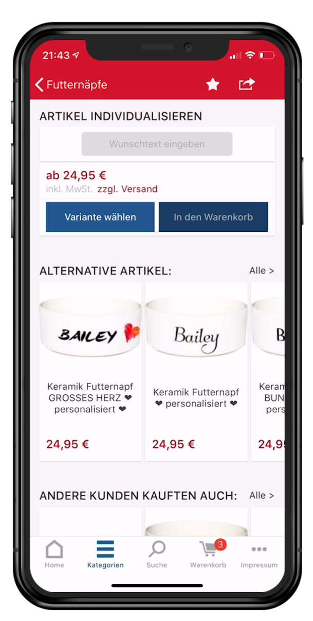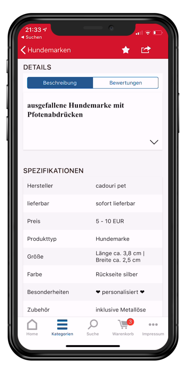 werden wie im Webshop dargestellt. Nur eben im vom iOS Nutzen gewohnten Layout.