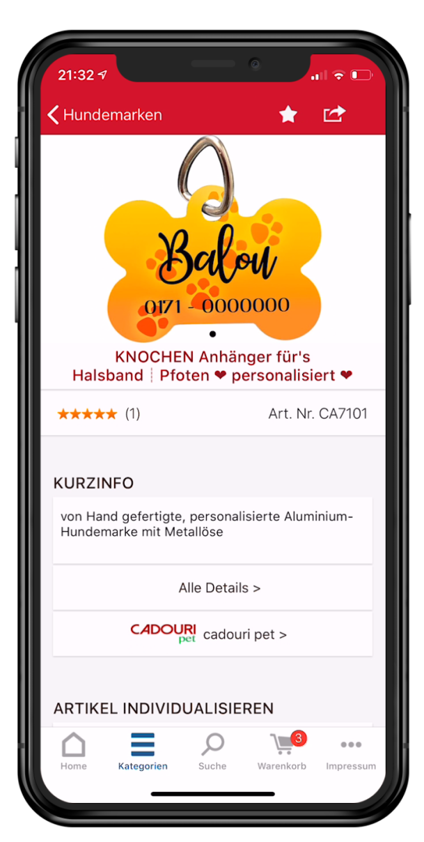 Ebenso wie im Webshop kannst du Produkte durch einen Wunschtext individualisieren. Mehrdimensionale Varianten (z.B. Größe, Farbe, Weite von Hosen) sind ebenfalls kein Problem.